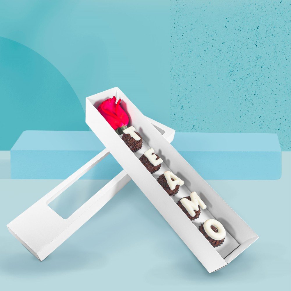 A caixa para rosa e 05 doces é perfeita para presentes e lembranças.