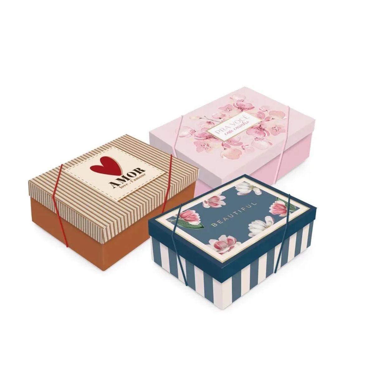Caixa Presente Cromus Média Flores Sortida 19,5x14x6,5cm Unidade Cromus