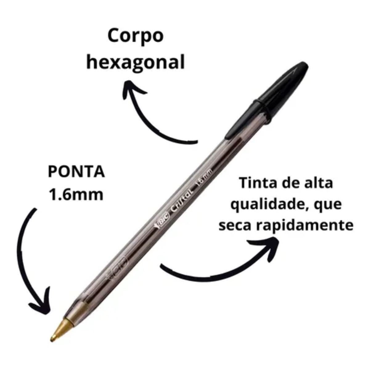 Caneta esferográfica BIC Cristal com ponta grossa de 1,6mm para uma escrita suave e intensa. Ideal para anotações rápidas e diárias, com design clássico e confortável.
