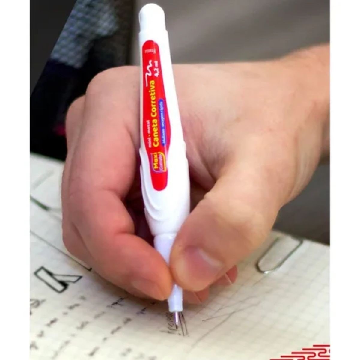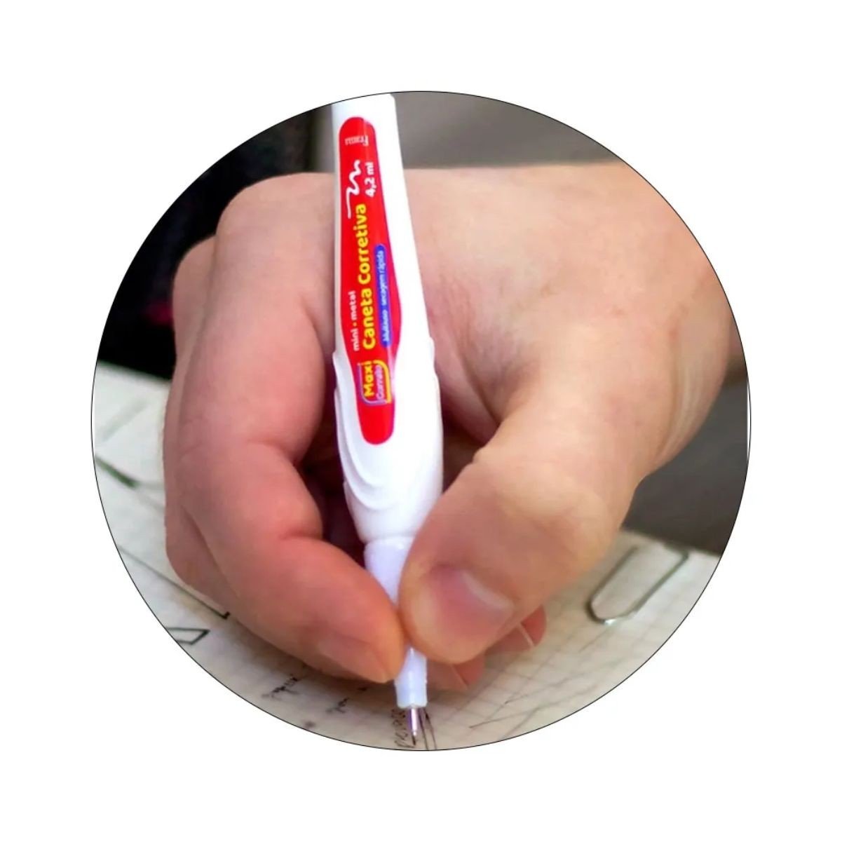 · Correção de Erros: Perfeita para corrigir erros de escrita em documentos, cadernos, livros, e outros materiais impressos ou manuscritos.