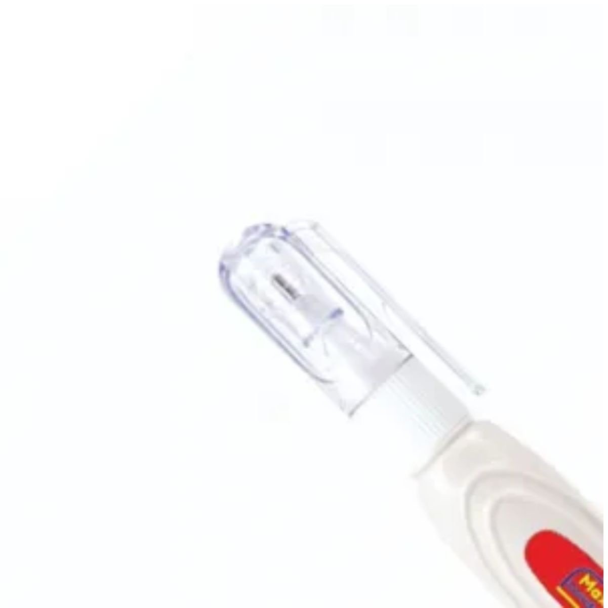 2. Aplicação: Pressione levemente a ponta da caneta sobre o erro a ser corrigido e aplique a solução corretiva com movimentos suaves.