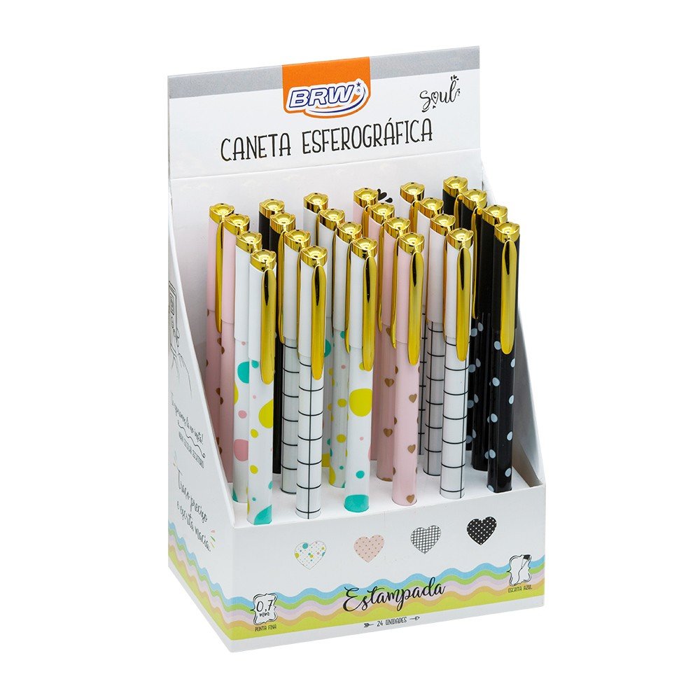 Caneta Esferográfica Branco e Poá 0,7mm Cor Azul Soul Brw