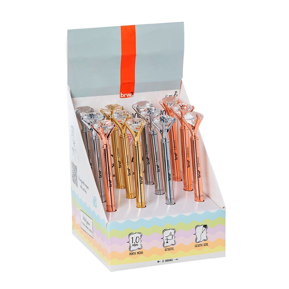Caneta Esferográfica 1.0mm Ouro Azul Diamond Brw
