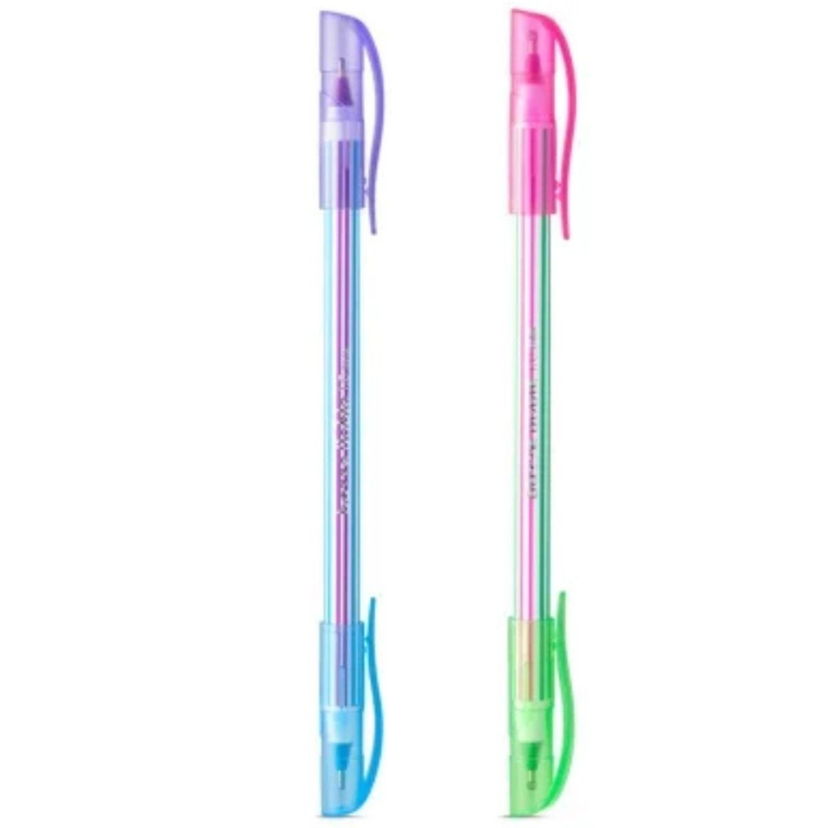 A caneta Doble tem toda a praticidade de possuir 2 cores clássicas na mesma caneta: azul e vermelha. Possui ponta média 1.0mm, escrita macia e cores marcantes, além de contar com código de barras individual.