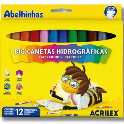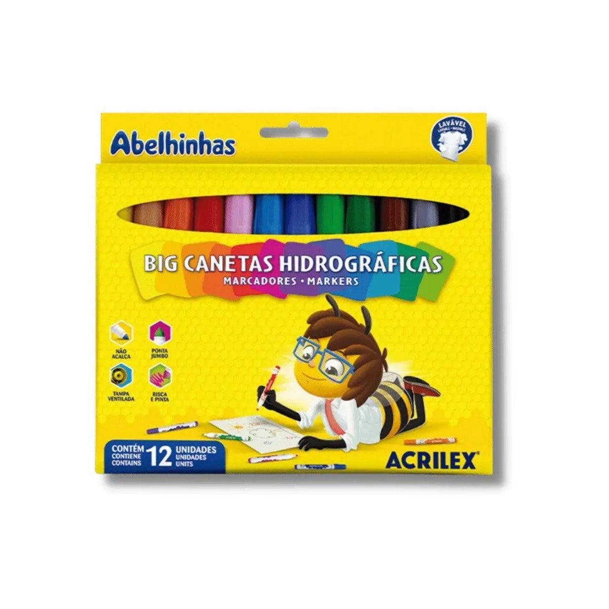 Referência: Caneta Hidrocor Jumbo 12 Cores - Acrilex.