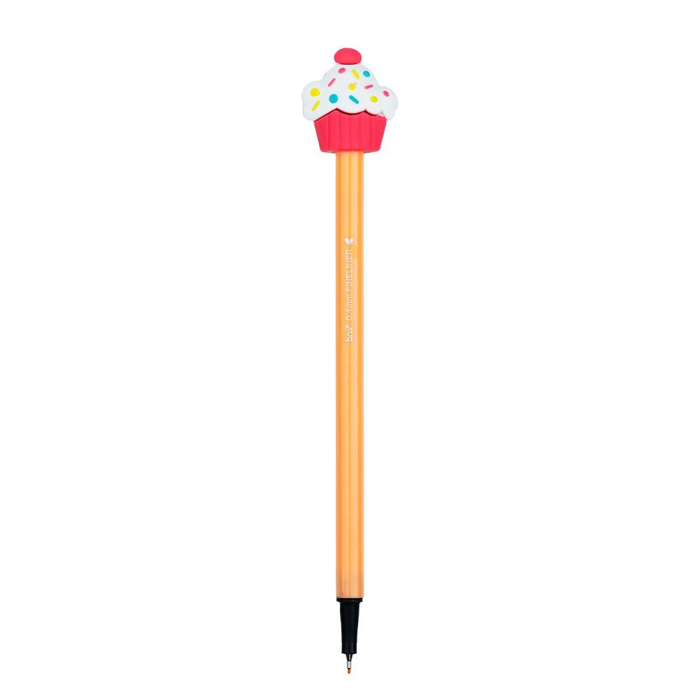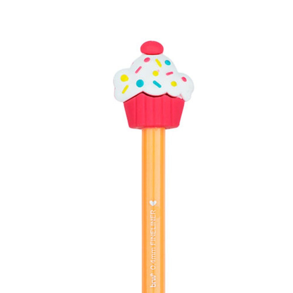 A Caneta Hidrográfica Fineliner possui uma ponta porosa de 0,4mm, sendo assim ideal para traços finos e delicados. O corpo da caneta é redondo proporcionando uma escrita confortável e delicada e em sua ponta encontra-se um cupcake muito bonitinho.