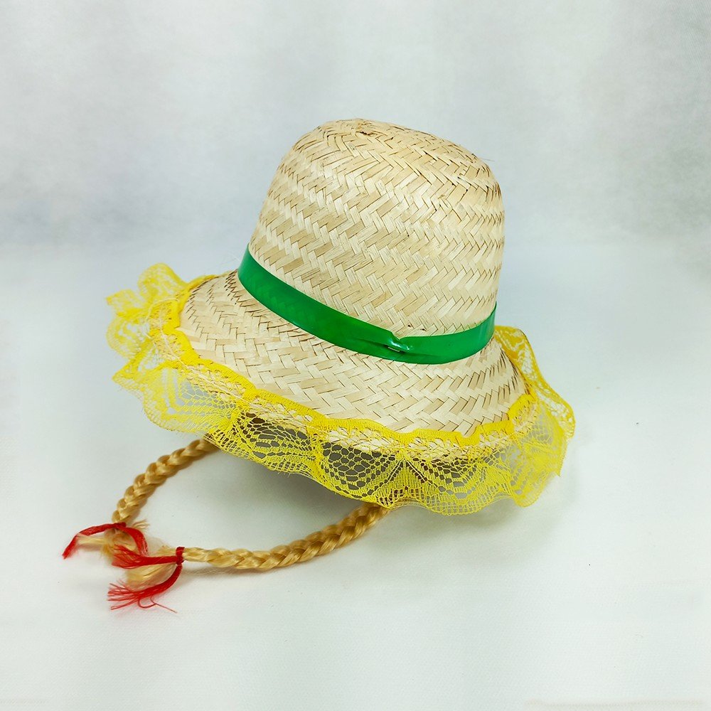 Chapéu de Palha Amarela com Trança Loira Bazar
