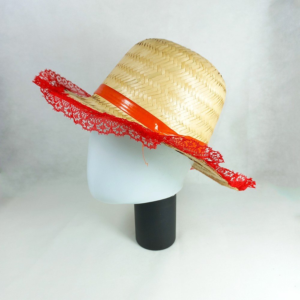 Chapéu De Palha Renda Vermelha Bazar Importadora