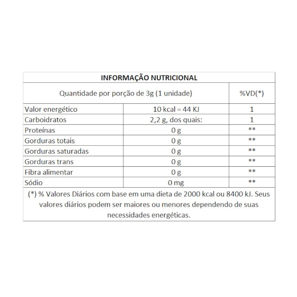 Açúcar, xarope de glicose, goma base, maltodextrina, carbonato de cálcio, dióxido de titânio, umectante glicerina, aroma idêntico ao natural de laranja, corantes e cera de carnaúba.