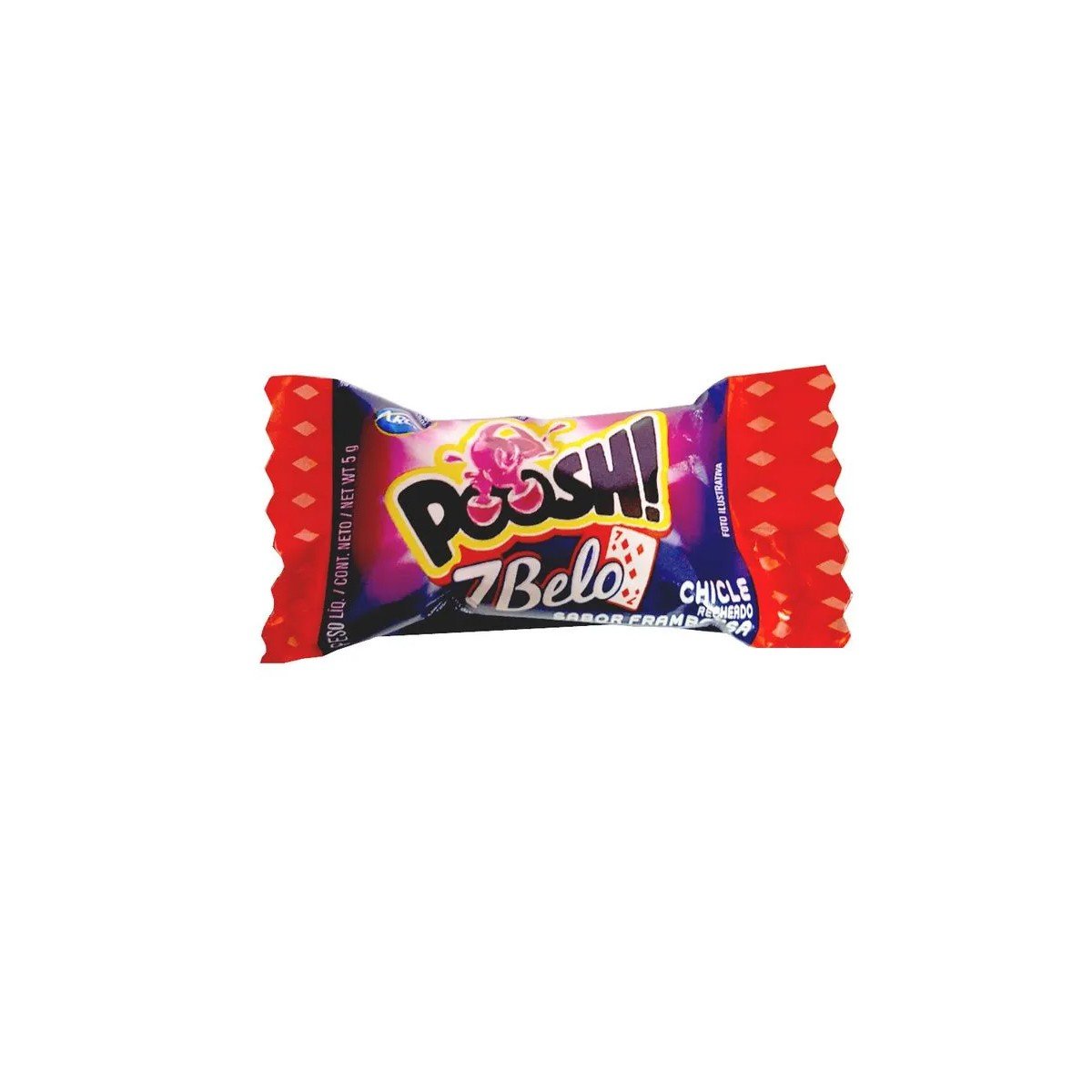 O chicle Poosh! tem casquinha crocante e recheio sabor da bala 7Belo.