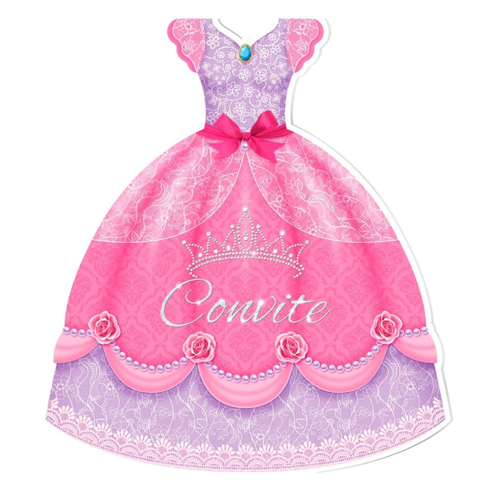 O convite de aniversário vestido de princesa, é uma ótima escolha para você decorar e chamar a atenção sobre a sua festa. Este convite com certeza irá atrair a atenção de todos que recebe-lo.