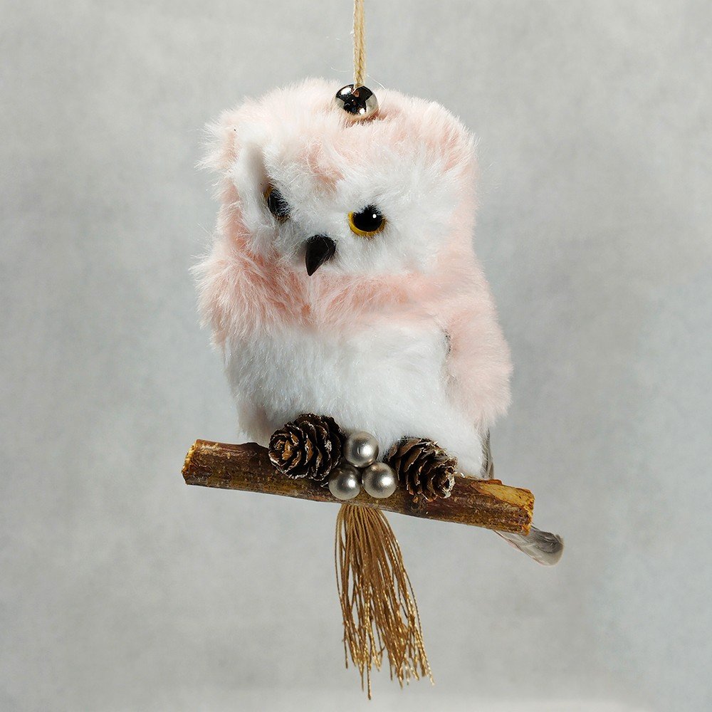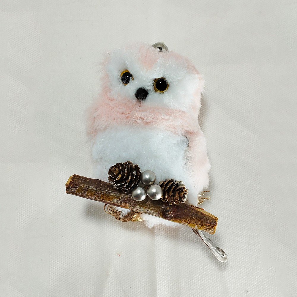 Enfeite Natalino Coruja Rosa e Branca 15x9x5cm Matsumoto