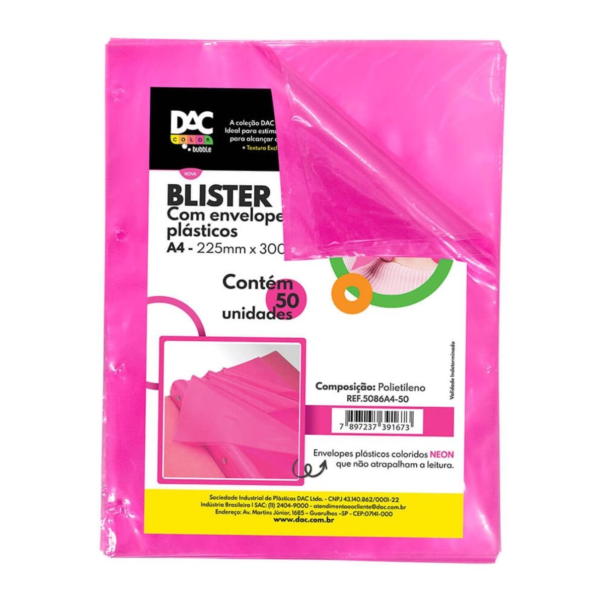Envelope Plástico A4 Colorido Rosa Neon com 50 unidades