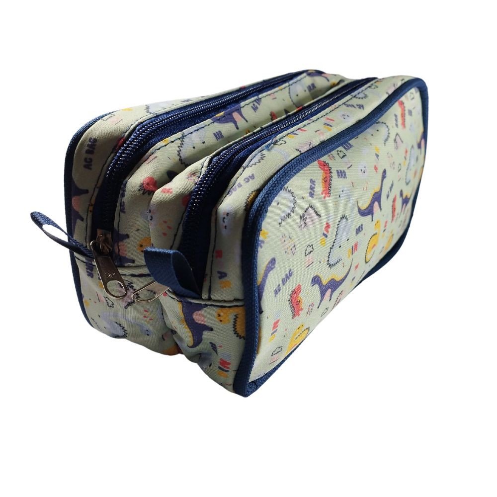 Estojo Duas Divisórias Médio Verde Dinossauro Ac Bag