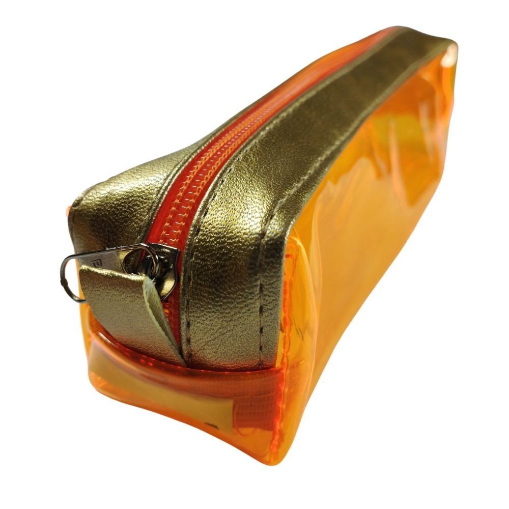 Estojo Tubo Laranja e Dourado Transparente Color Ac Bag