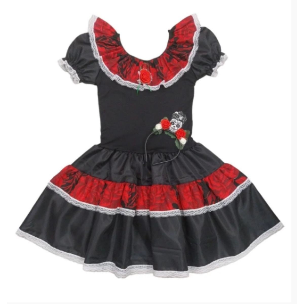 A Fantasia Bruxa Caveira Mexicana N° 14 Ref 2016 Folia é perfeita para quem quer um visual criativo e cheio de personalidade em festas, Halloween ou eventos temáticos. Com cores vibrantes e detalhes inspirados na tradicional caveira mexicana, esta fantasia proporciona conforto e liberdade de movimento, permitindo que a criança curta a festa com estilo.