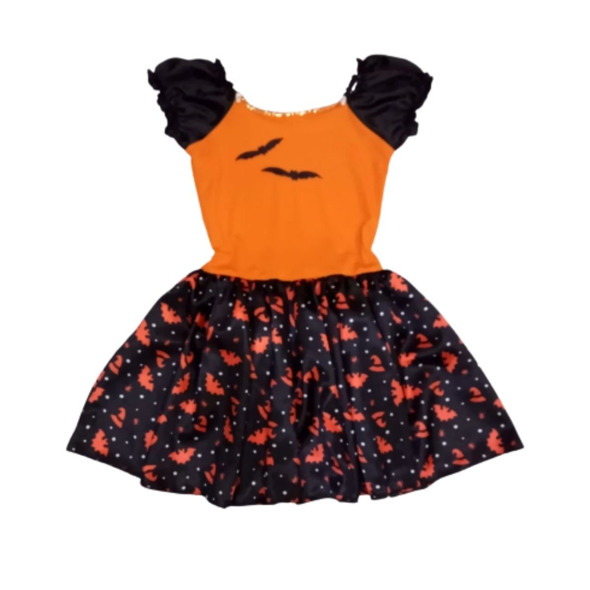 Complete a fantasia com chapéu de bruxa e acessórios laranja ou pretos para criar um look divertido e autêntico que vai encantar na festa!