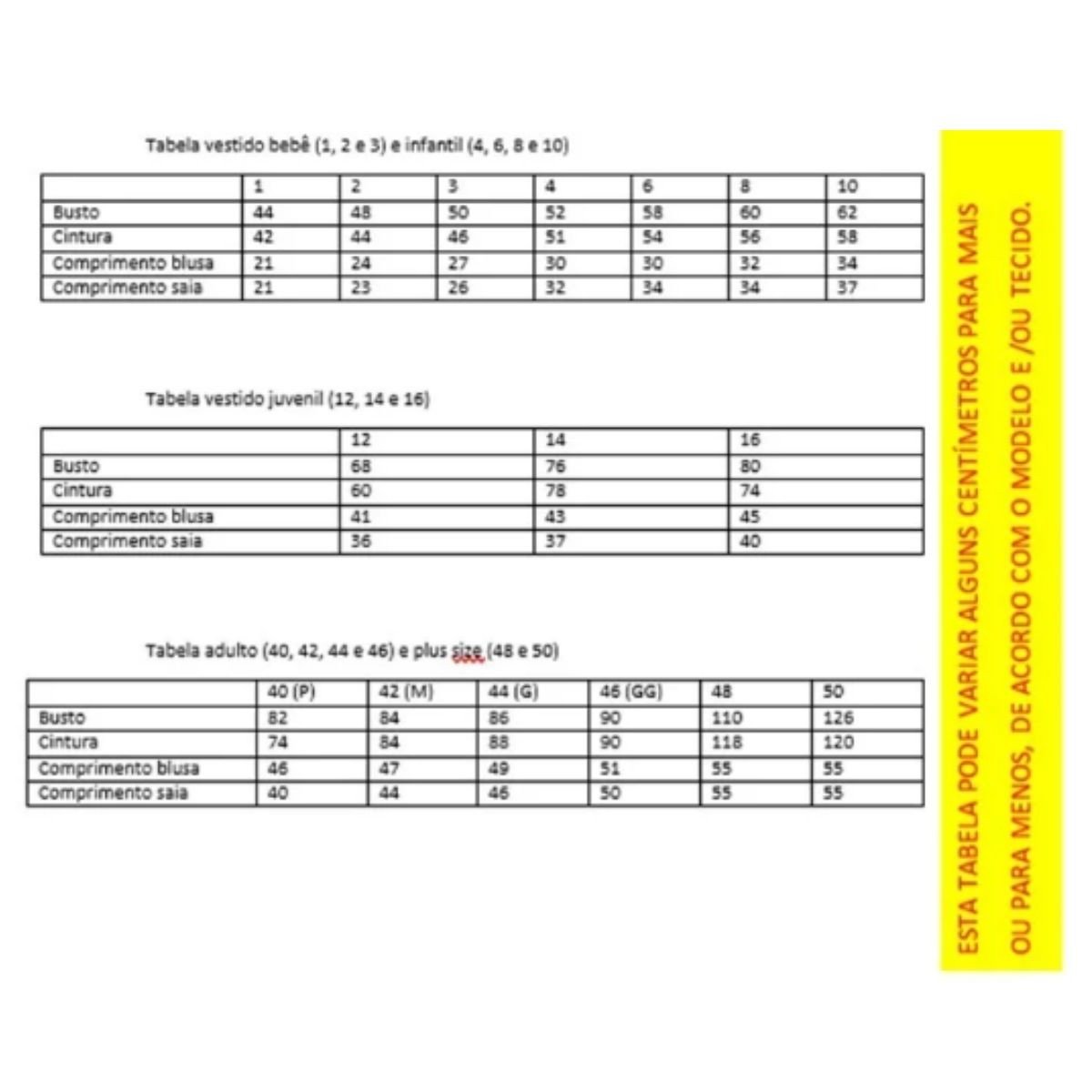 Dimensões: Tamanho N° 16