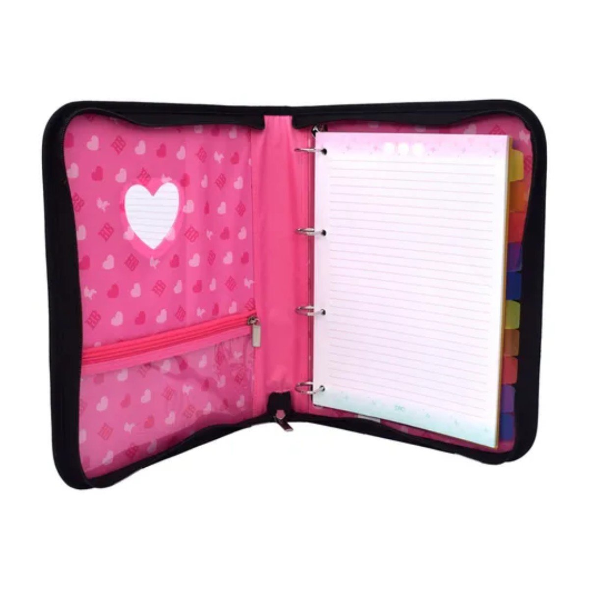 O Fichário Preto com Zíper Rebecca Bonbon da DAC une funcionalidade e estilo — ideal para quem quer organizar matérias da escola, faculdade ou trabalho com praticidade e elegância. Com zíper de fechamento e detalhes sofisticados, ele garante praticidade no dia a dia e segurança para manter folhas e documentos protegidos, além de um design que agrada quem não abre mão de bom gosto.