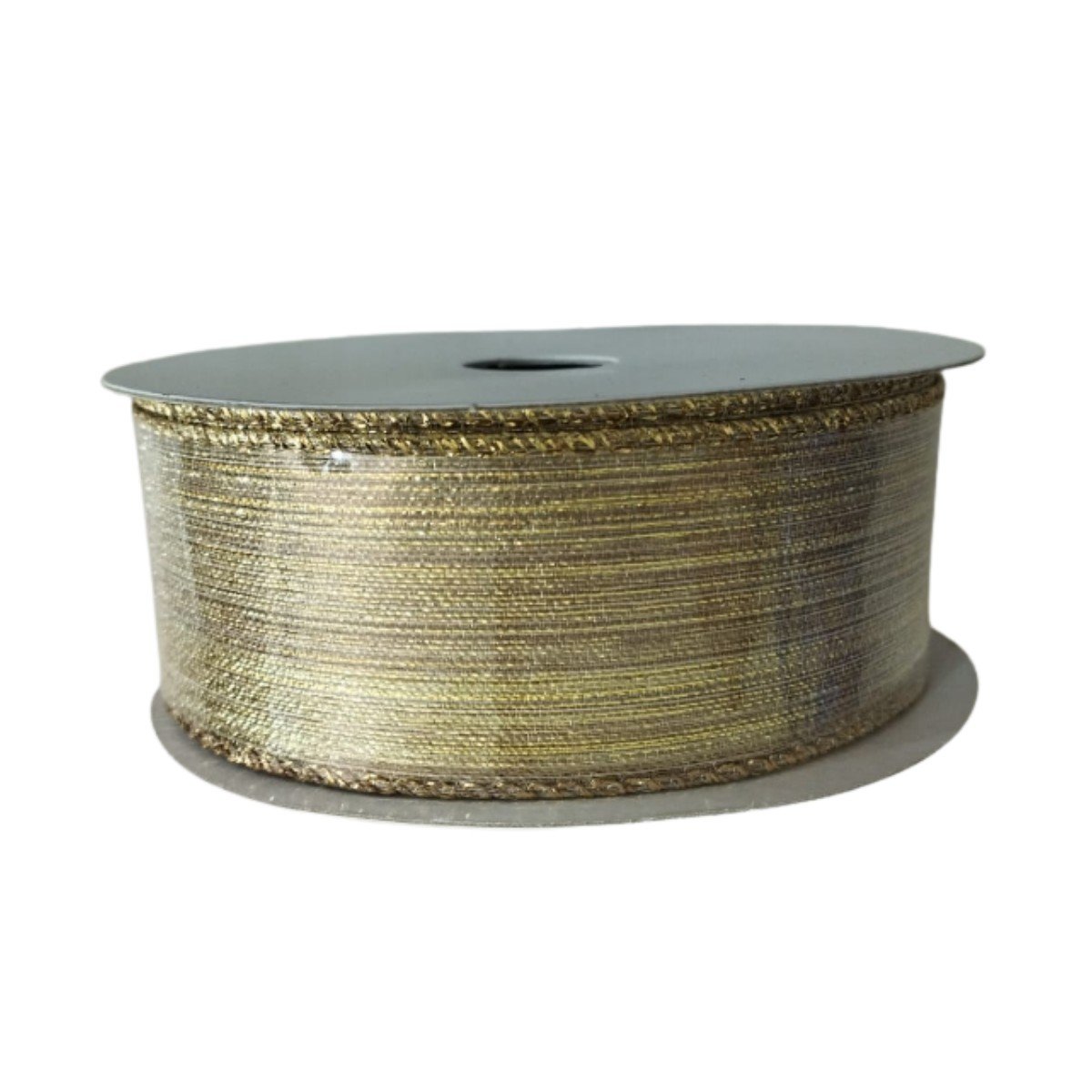 Fita Ouro Listras Ouro 38mm Aramada Ref 1013535 Rolo 9,14m Cromus