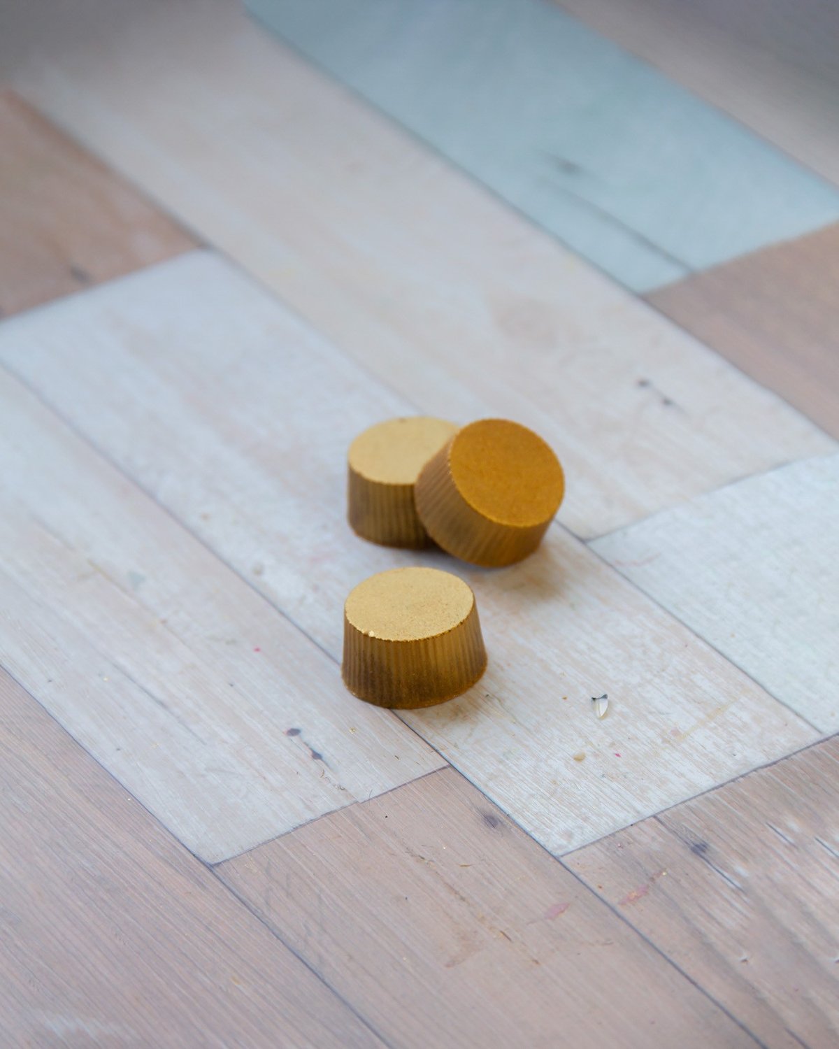 Derreta o chocolate e dê o ponto, coloque-o na forma de acetato, bata levemente o fundo da forma em uma superfície plana, para a eliminação de bolhas de ar do chocolate.
