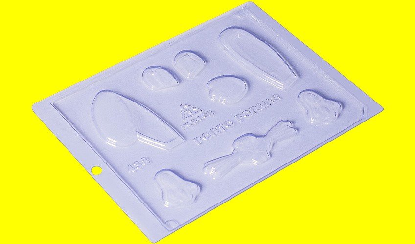 As formas de acetato são perfeitas para a produção de chocolates maciços e cascas com muita praticidade e rico em detalhes.
