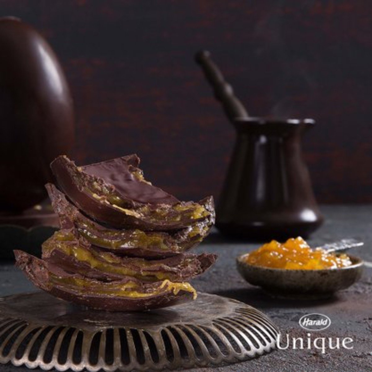 4-Retire a forma da geladeira e com cuidado remova a película de silicone. Seu chocolate estará moldado e pronto para possíveis finalizações ou consumo.