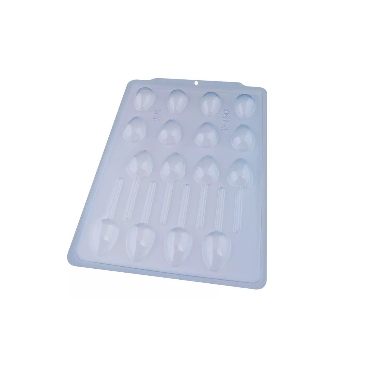 As formas de acetato são perfeitas para a produção de chocolates maciços e cascas com muita praticidade e rico em detalhes.