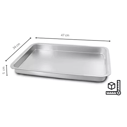 A Forma Retangular da Caparroz é ideal para o preparo de bolos, tortas, lasanhas, assados e diversas receitas doces ou salgadas. Com dimensões amplas de 47,2×34,3×6,5 cm, ela oferece excelente capacidade e profundidade, sendo perfeita para preparos em maior quantidade, tanto para uso doméstico quanto profissional. Seu formato garante cozimento uniforme e facilita o manuseio durante o preparo e a finalização das receitas.