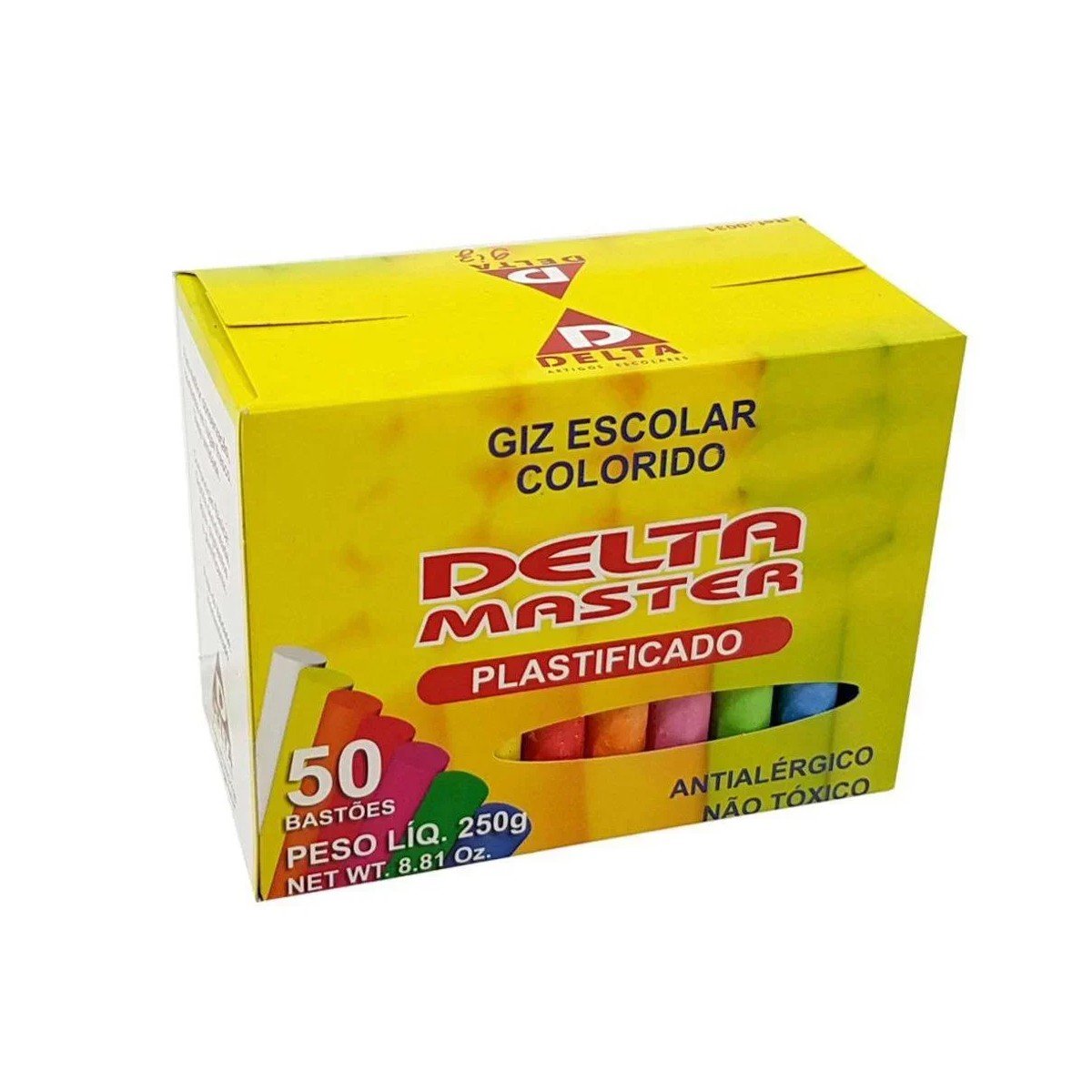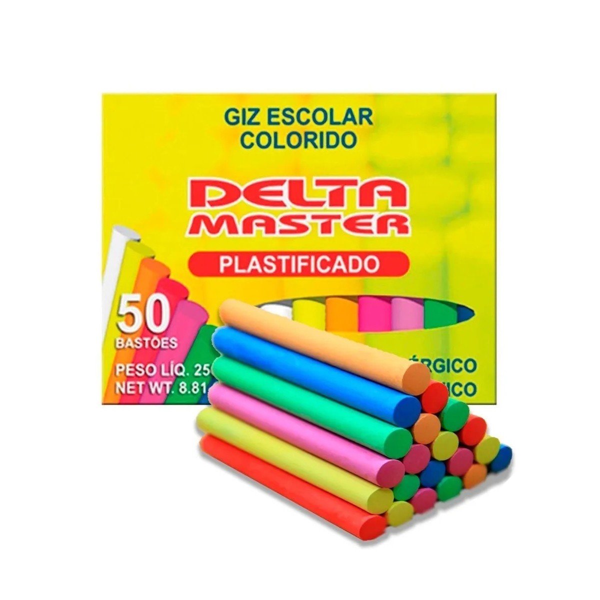 Giz Escolar Colorido Plastificado 50 Unidades Delta