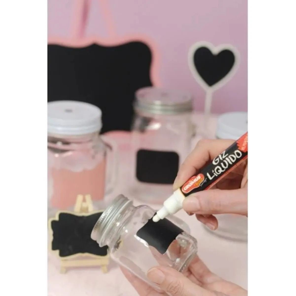 Use o giz líquido para criar cardápios, mensagens ou decorações em vitrines e quadros. Para apagar, basta um pano úmido, deixando a superfície pronta para uma nova criação!