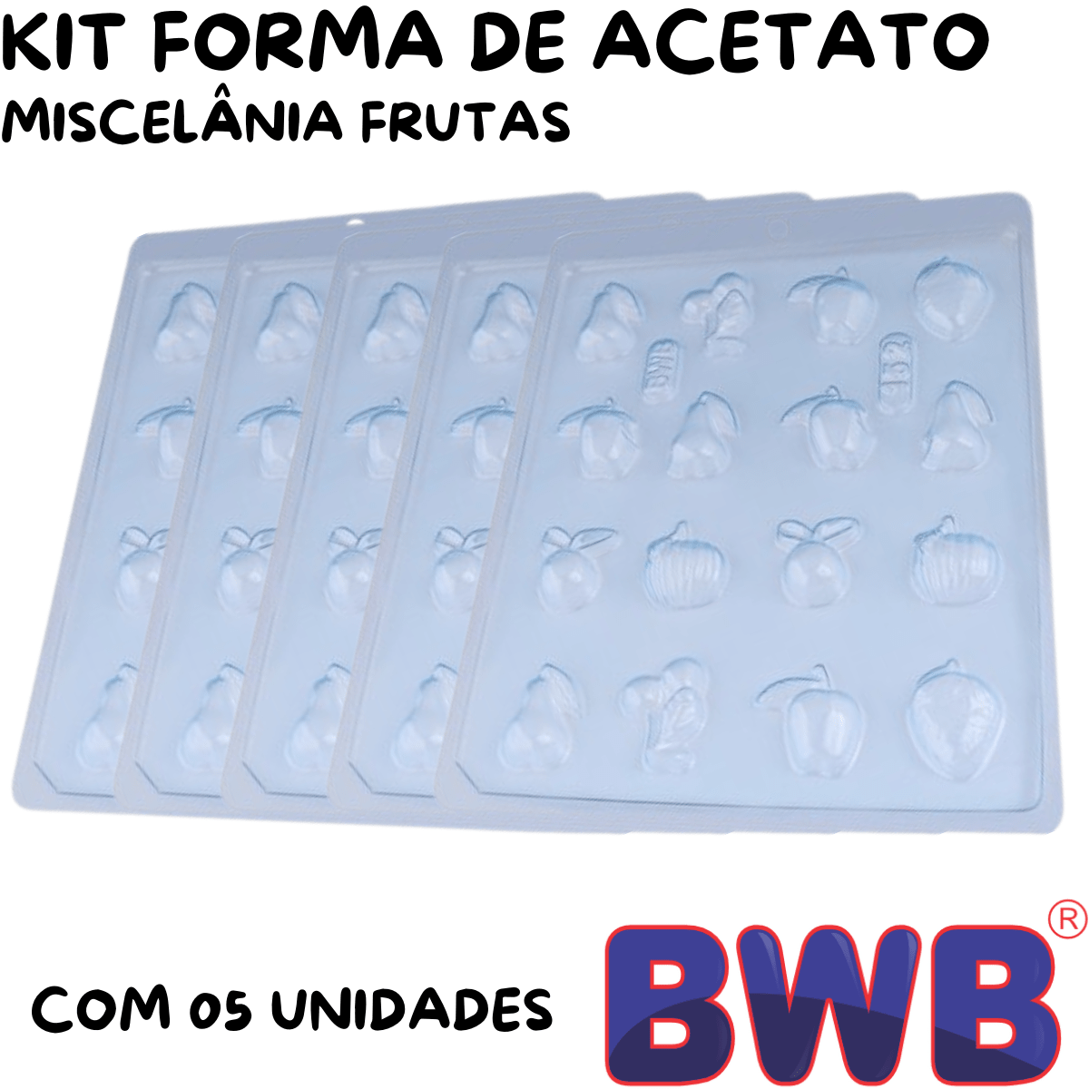 Kit de Formas Acetato Miscelânia Frutas Cód.152 com 05 Unidades BWB