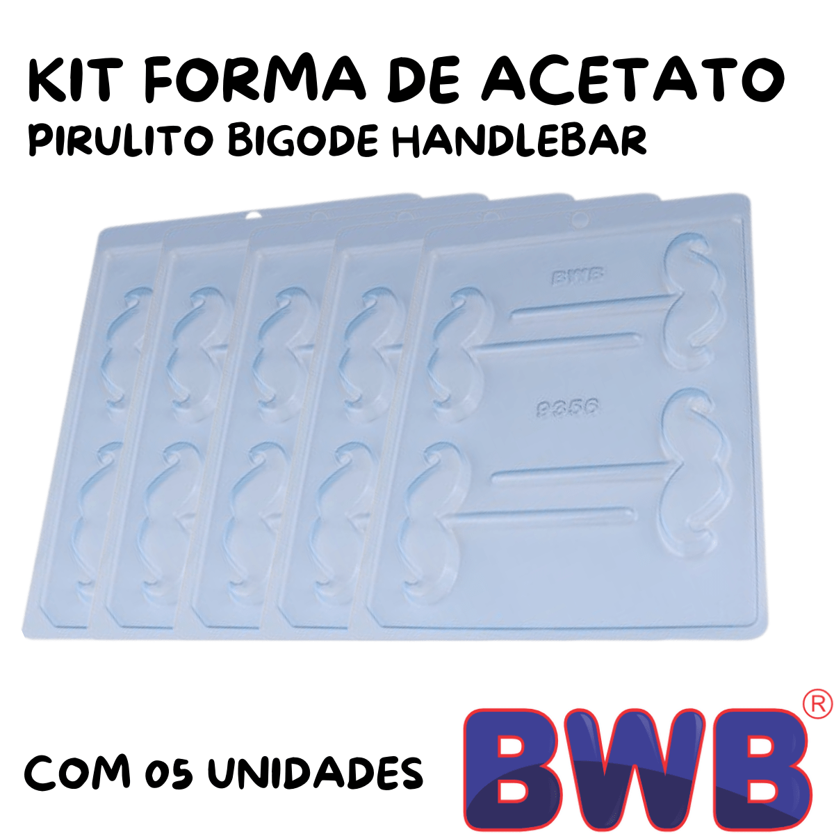 Kit de Formas Acetato Pirulito Bigode Handlebar Cód.9356 com 05 Unidades BWB
