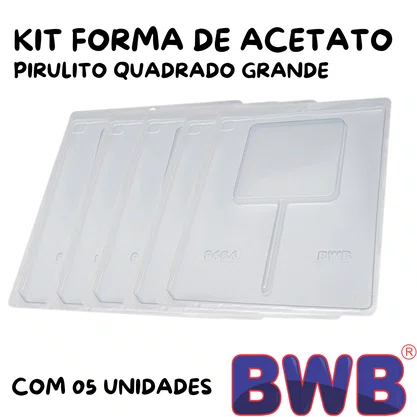 Kit de Formas Acetato Pirulito Quadrado Grande Cód. 9464 com 05 Unidades BWB