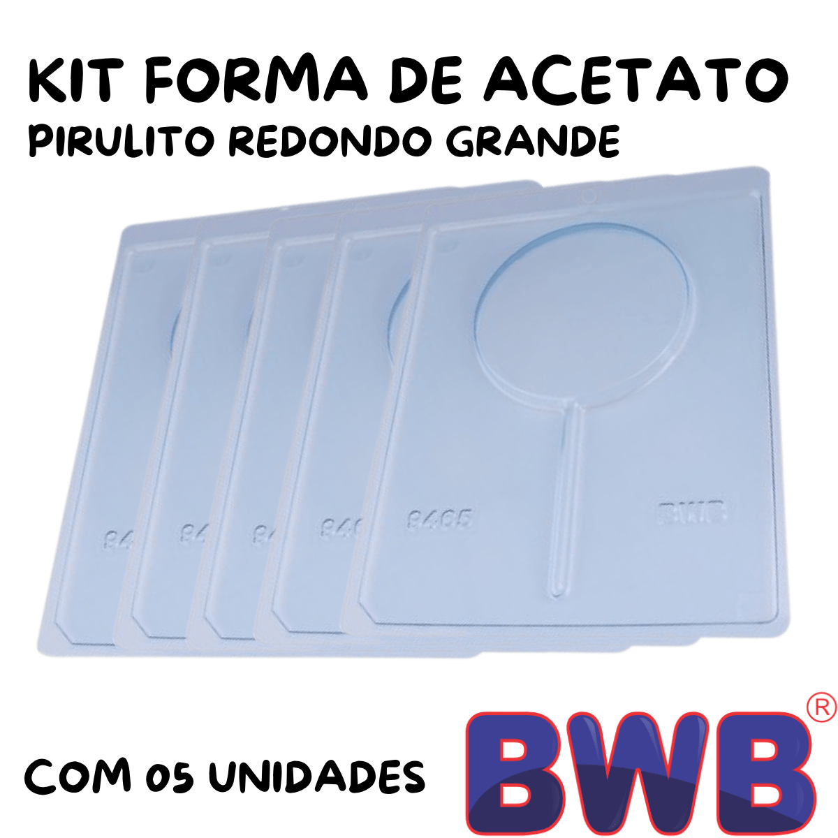 Kit de Formas Acetato Pirulito Redondo Grande Cód.9465 com 05 Unidades BWB