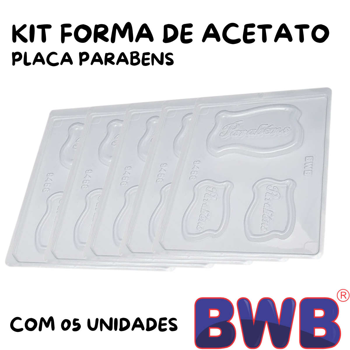 Kit de Formas Acetato Placa Parabéns Cód.9456 com 05 Unidades BWB