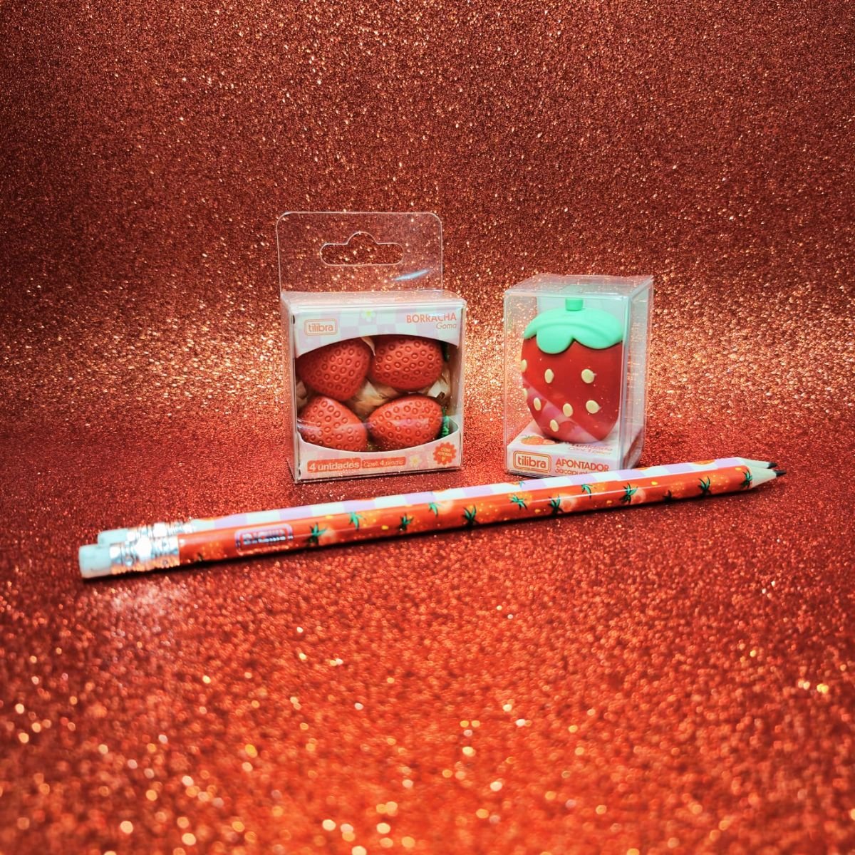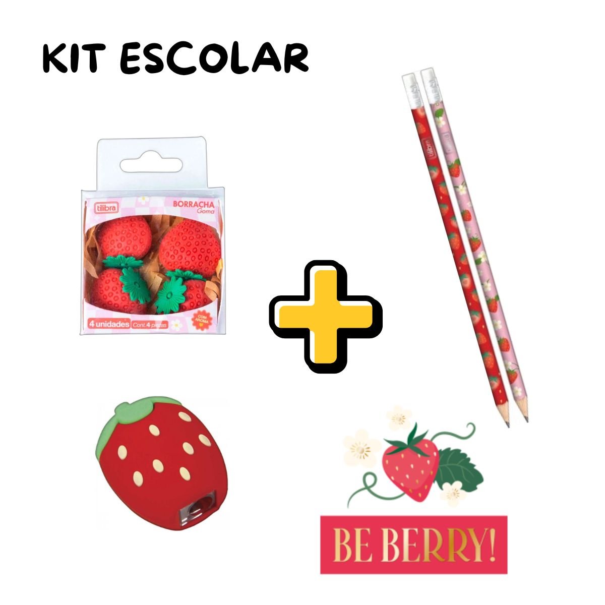 Borracha Morango Be Berry Tilibra com 4 UnidadesApontador S/ Depósito Morango Be Berry Tilibra C/ AromaCor: VermelhoLápis Preto Nº 2 Morango Be Berry Tilibra Sortido| Quant: 2x