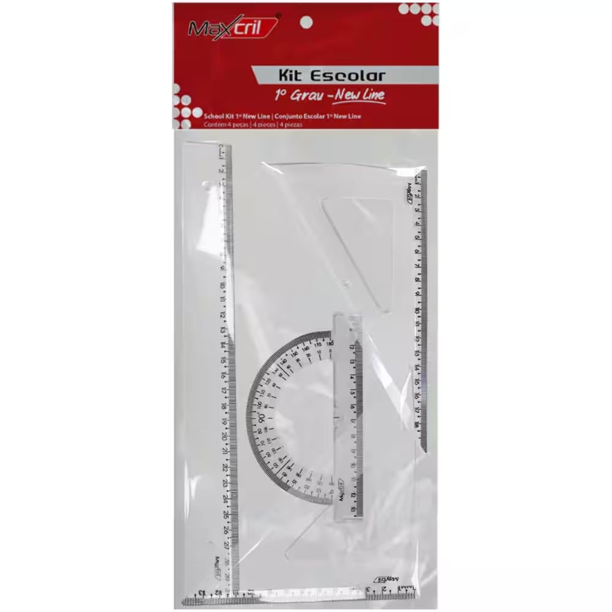 Kit Escolar Régua, Esquadro e Transferidores 1º Grau Maxcril
