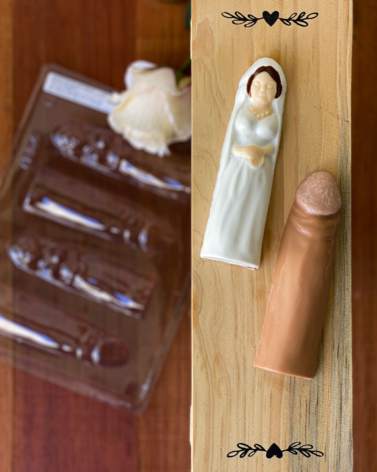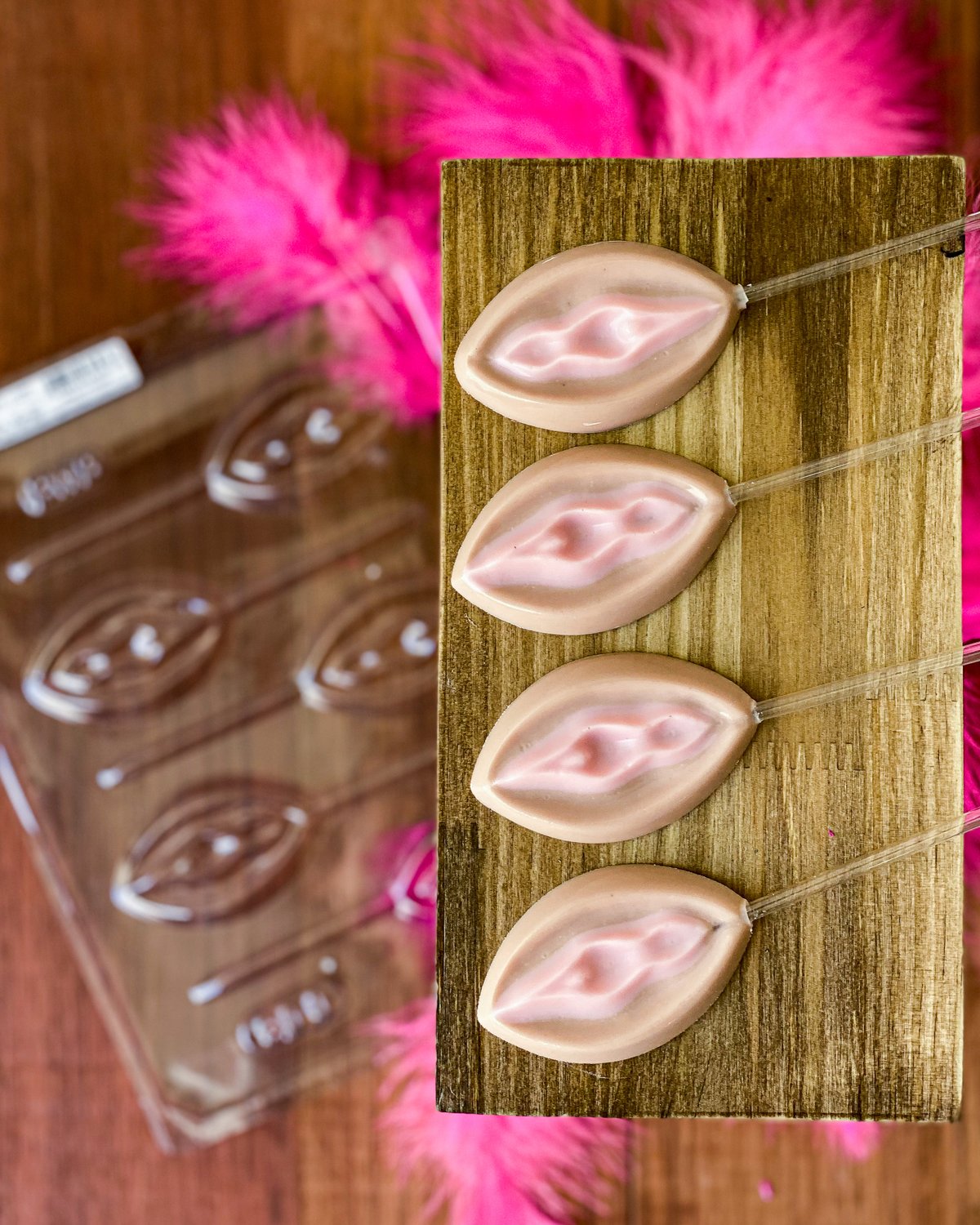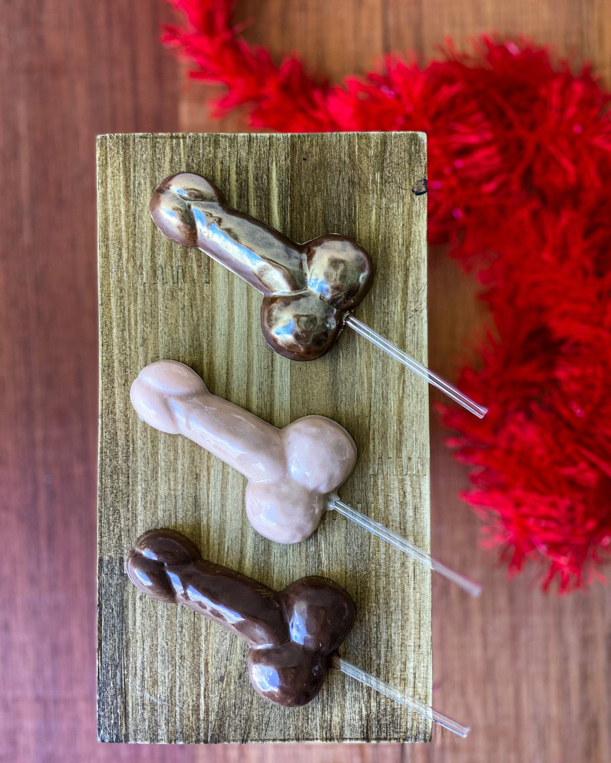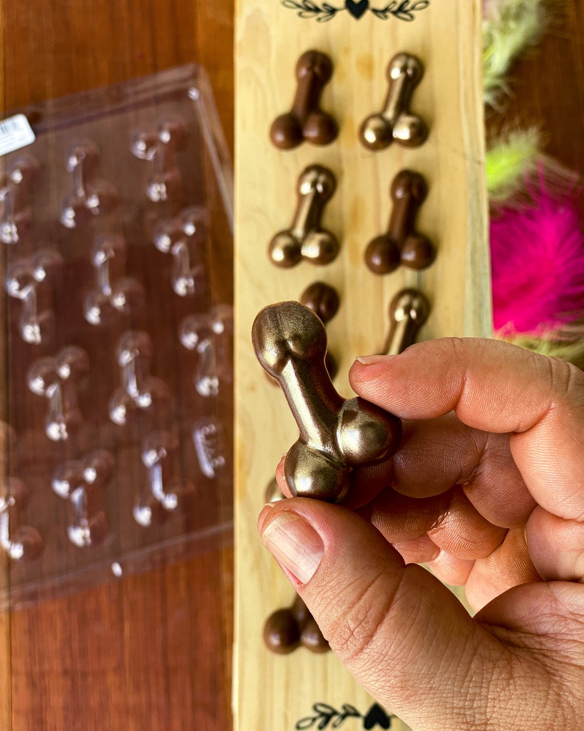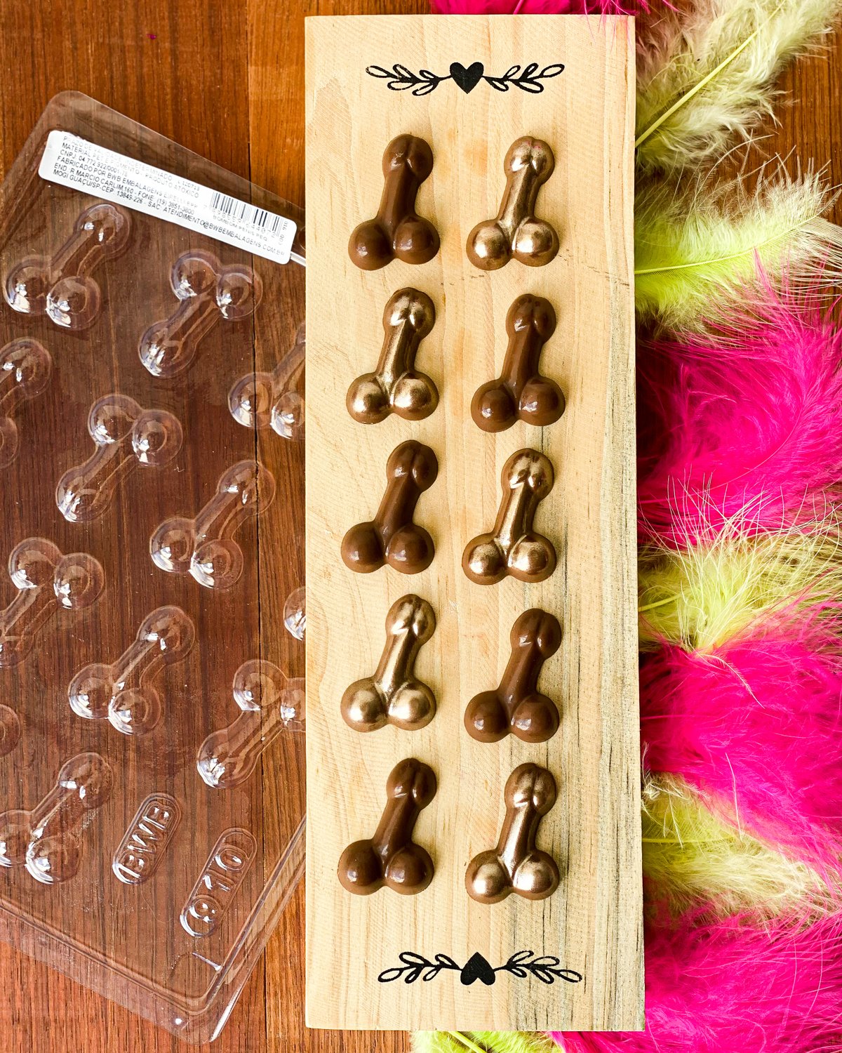 Formato: Bombom Penis Pequeno, Bombom Penis Nº1, Bombom Penis Curvo, Bombom Noivinha Penis, Bombom Penis Frente e Verso, Pirulito Penis e Pirulito Vagina