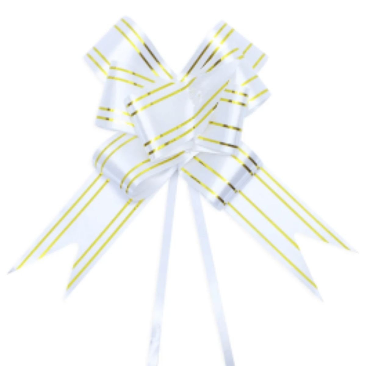 Laço Pronto 18mm Pequeno Branco Listra Ouro Best Pct C/ 10 Un