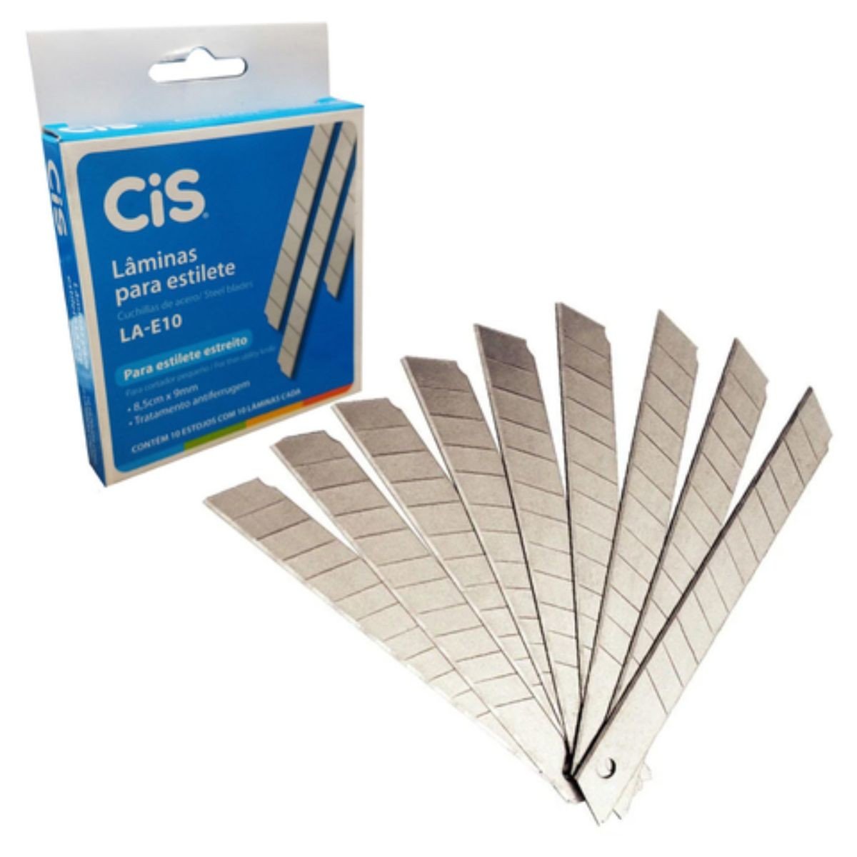 Lâmina Estilete Larga CIS - Caixa com 10 Cartelas de 10 Unidades (100 unidades no total)
