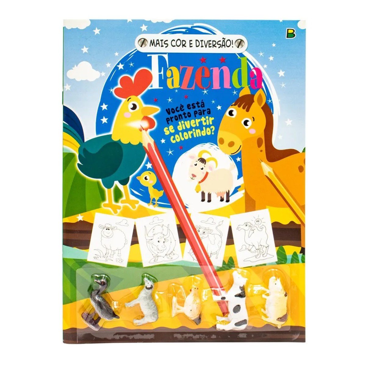 Livro Colorir Animais Da Fazenda C/ 5 Mini Animais Brasileitura