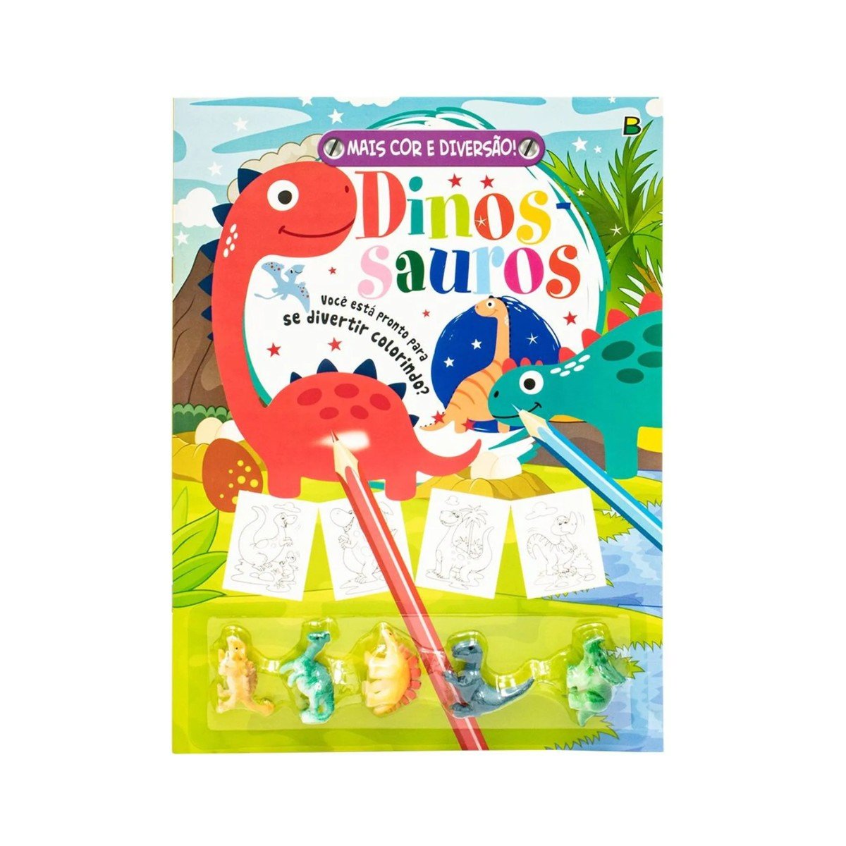 Livro Colorir Dinossauros C/ 5 Mini Dinossauros Brasileitura