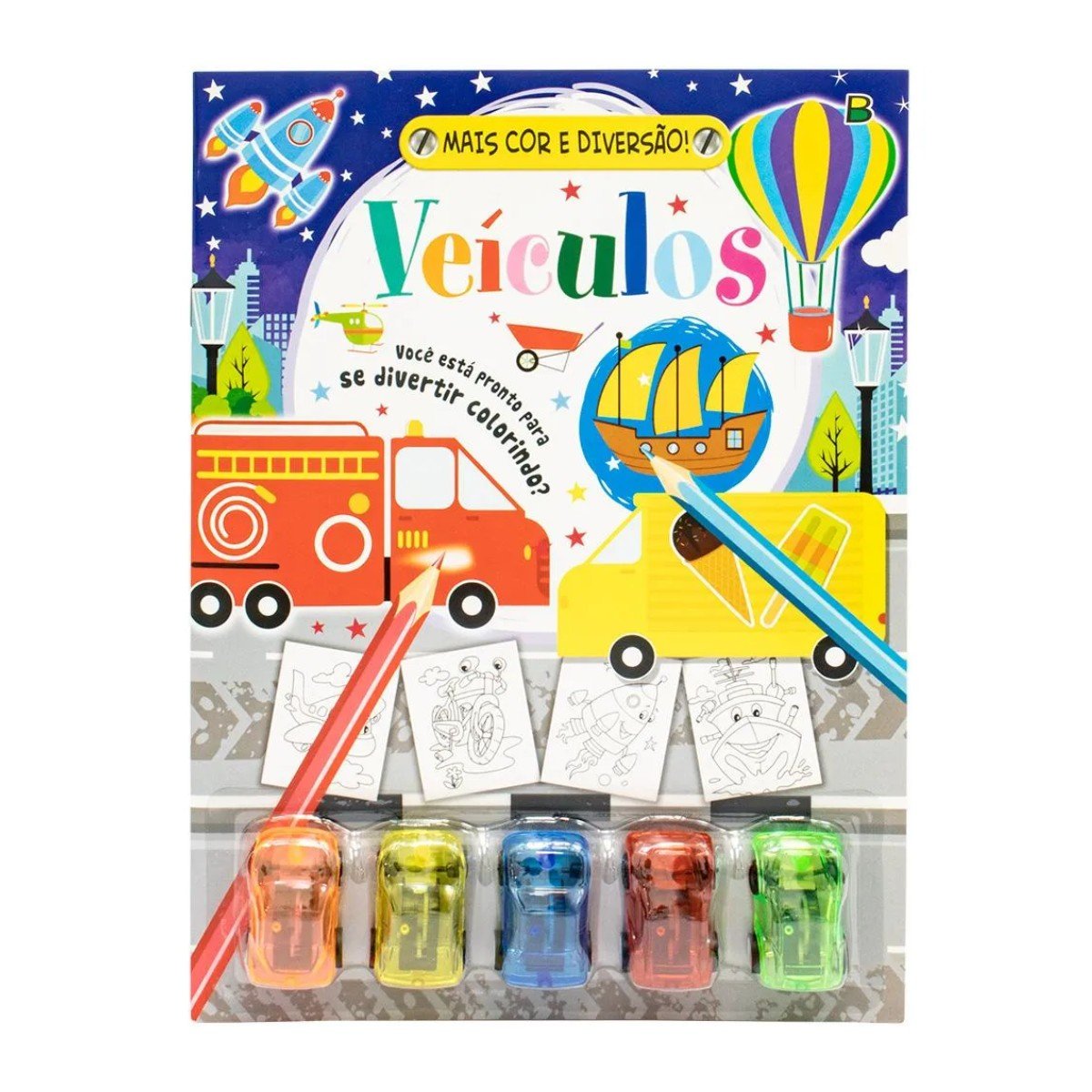 Livro Colorir Veiculos C/ 5 Mini Carrinhos Brasileitura