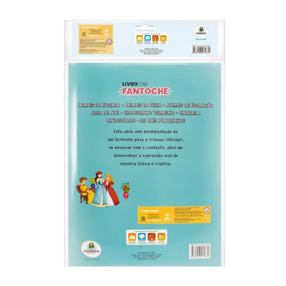 Composição: Livro brochura grampeado com laminação brilho, acompanha fantoche Interativo