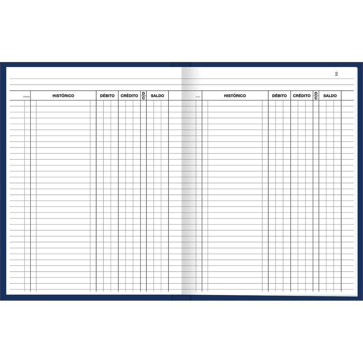 Quantidade: 100 folhas, oferecendo amplo espaço para registros contábeis.
