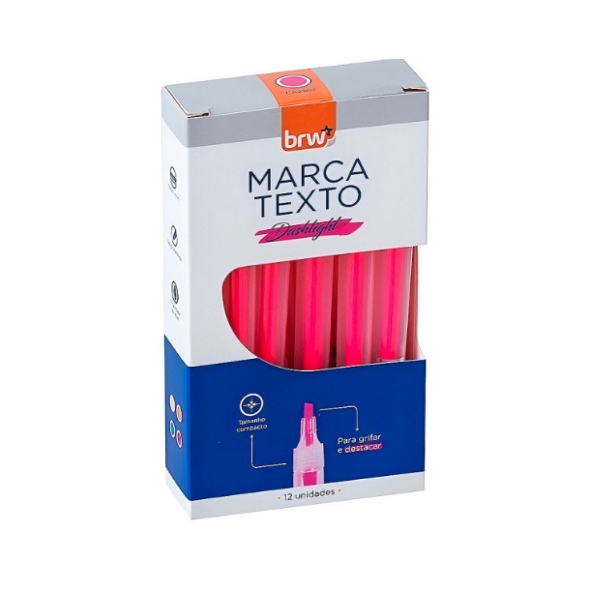 O marca texto da Brw não mancha o verso da folha de papéis acima de 75g/m³, possui a sua tinta à base de água e não é tóxico.