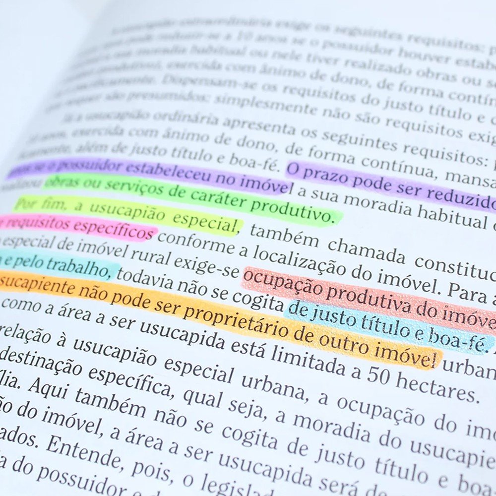 Os marcadores de texto são vistos muitas vezes como um item essencial para estudantes e leitores, porém eles também são muito bem vistos na sua utilização em conjunto com as notas autoadesivas e lembretes por proporcionar um maior destaque nas palavras/partes importantes.