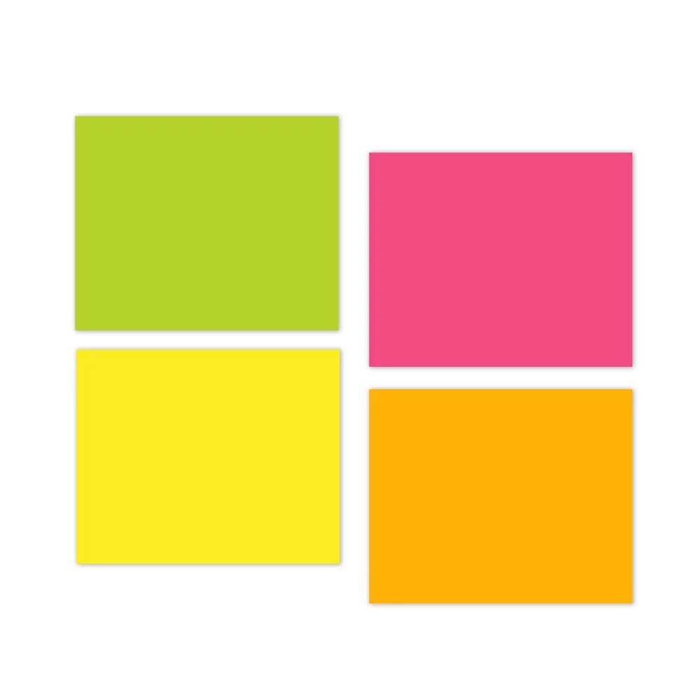 São 4 blocos de 100 folhas cada em cores neon. O papel aceita escrita, é fácil de aplicar e reposicionável! Em tamanho super prático pra carregar no estojo. Dimensões: 50x40mm.