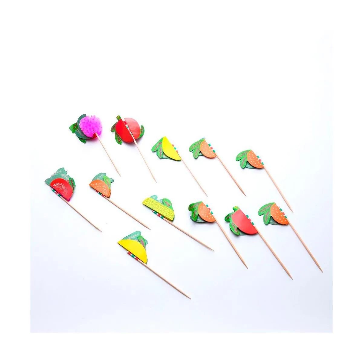 O palito com frutas, da marca Yoss, contém 12 unidades, é uma excelente escolha para quem deseja acrescentar a decoração na hora da festa.